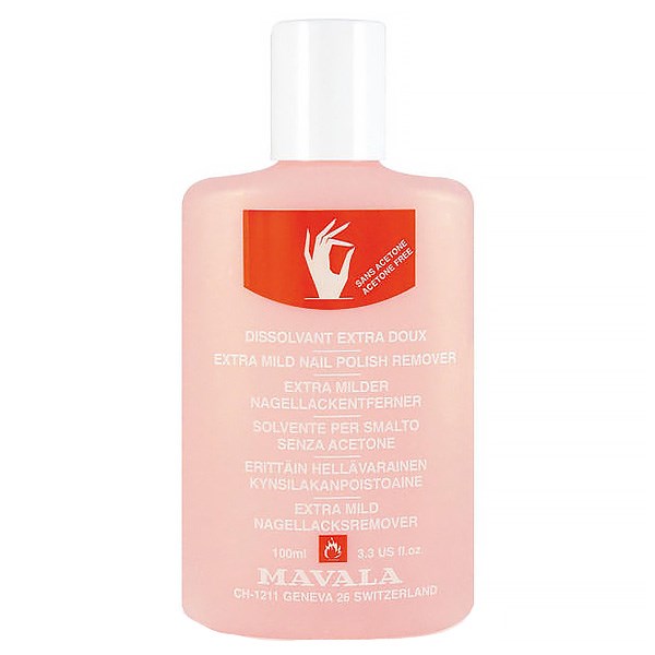 استفاده از لاک پاک کنهای حاوی استون باعث شده که علاوه بر پاک کردن لاک، به مرور به سطح ناخنها هم آسیب رسانده و باعث نازک و شکننده شدن ناخنها شود. به همین دلیل استفاده از پاک کنندههای فاقد استون بهتر بوده و آسیب کمتری به ناخنها وارد میگردد. یکی از نمونهی بسیار خوب و پر طرفدار پاک کنندهها، لاک پاک کن ماوالا مدل اکسترامیلد است. این محصول که ساخت کشور سوییس بوده و به جای استون حاوی نوعی حلال به نام متیل استات است از نوعی استر با بوی مطبوع، شفاف، بی رنگ و البته قابل اشتعال تشکیل شده. متیل استات سمیت کمی دارد و حلالی سازگار با محیط زیست محسوب میشود. لاک پاک کن اکسترامیلد در حجم 100 میلیلیتر در دسترس بوده و بدون آسیب رساندن به بافت ناخن و پوست اطراف آن لاک را به راحتی پاک میکند. لاک پاک کن ماوالا مناسب ناخنهای شکننده، خشک و حساس است؛ چرا که حاوی چربیهای ضروری بوده و بر خلاف استون ناخنها و اطراف آن را خشک نمیکند. فقط کافیست که پنبه را به این مایع آغشته کرده و برای چند ثانیه روی ناخن نگه داشت تا به لایههای زیرین نفوذ کرده و صفحه ناخن را به راحتی پاک کند.
