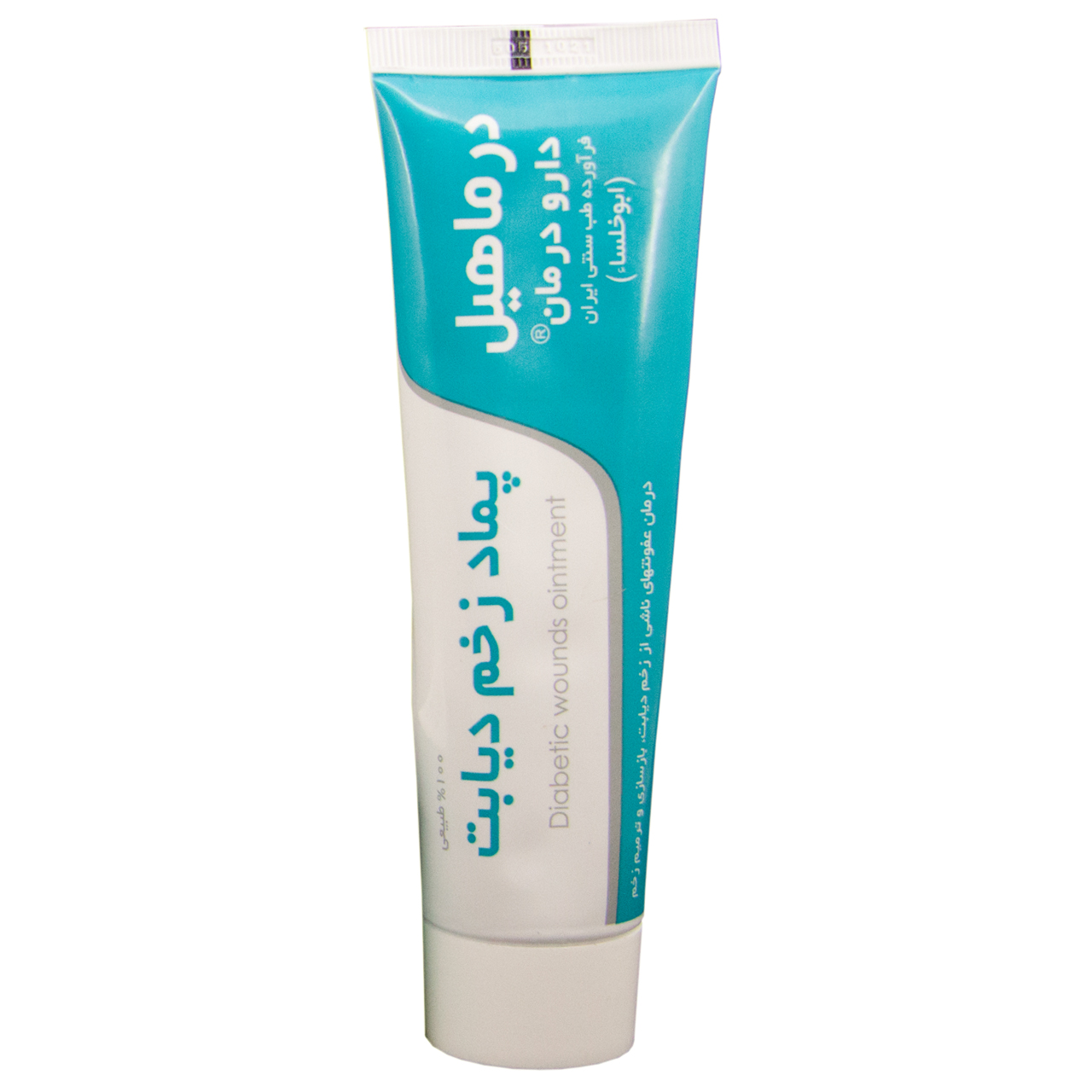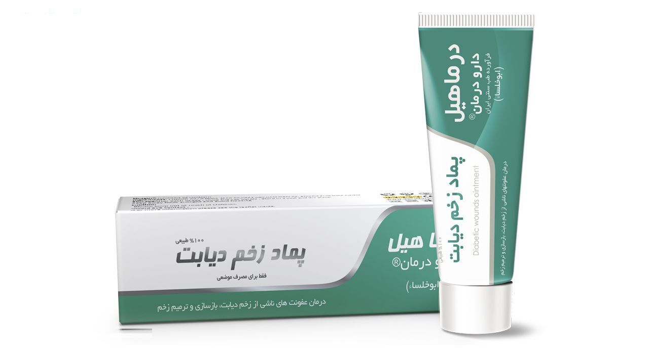 مواد موثره موجود در فرمولاسیون این پماد از جمله ترکیبات نفتاکینونی مانند آلکانین و شیکونین و ترکیبات فنلی مثل فلاونوئید به دست آمده از عصاره ابوخلسا دارای خواص ضد قارچی ضد میکروبی وضد التهابی میباشند . ترکیبات آنتی اکسیدانی موجود در پماد موجب به دام انداختن رادیکال های آزاد میشود که نقش به سزایی در ترمیم زخم و جلوگیری از عفونت زخم دیابتی دارد .همچنین وجود موم زنبور عسل در این ترکیب اثرات درمانی دارو را در ترمیم زخم دیابتی دو چندان نموده است. نکات قابل توجه: از تماس پماد با چشم بپرهیزید. پماد را حتی المقدور از دسترس کودکان دور نگهداری کنید. در صورت بروز حساسیت به پماد با پزشک مشورت نمائید. خروج ترشحات از محل زخم درحین مراحل درمان با پماد نشانه بهبود و تخلیه عفونت بوده و موجب نگرانی نمیباشد. کنترل قند بیمار با توجه به تجویز و توصیه های پزشک در کوتاه نمودن زمان بهبود زخم بسیار موثر میباشد. موارد منع مصرف: مصرف همزمان سایر ترکیبات موضعی بخصوص کورتیکوستروئیدها و وجود هرگونه سابقه حساسیت پوستی شناخته شده مصرف در دوران بارداری و شیردهی: مصرف دارو در دوران بارداری و شیر دهی بلا مانع می باشد. عوارض جانبی: هر دارو به موازات اثرات درمانی مطلوبی که بر جای میگذارد ممکن است باعث بروز عوارض ناخواسته نیز شود. گرچه همه این عوارض در یک فرد دیده نمیشود ، لیکن در صورت بروز هر نوع عارضه با پزشک یا داروساز مشورت نمایید. عارضه احتمالی این دارو بثورات جلدی (جوشهای موضعی) در اطراف ناحیه زخم می باشد. مقدارو نحوه مصرف: ابتدا موضع زخم را با سرم نرمال سالین شستشو داده سپس زخم را با میزان کافی از پماد بپوشانید، در آخر پس از قرار دادن پد آماده زخم بستر ابوخلسا و یا گاز وازلینه پانسمان نمایید. پانسمان را بعد از 48 ساعت باز کرده ومراحل ذکر شده در بالا را مجددا تکرار کنید . این روند را هر 48 ساعت یکبار تا بهبودی کامل زخم ادامه دهید. شرایط نگهداری: دارو را در جای خشک و خنک، دور از تابش مستقیم نور خورشید نگهداری کنید و از یخ زدگی محافظت نمایید.