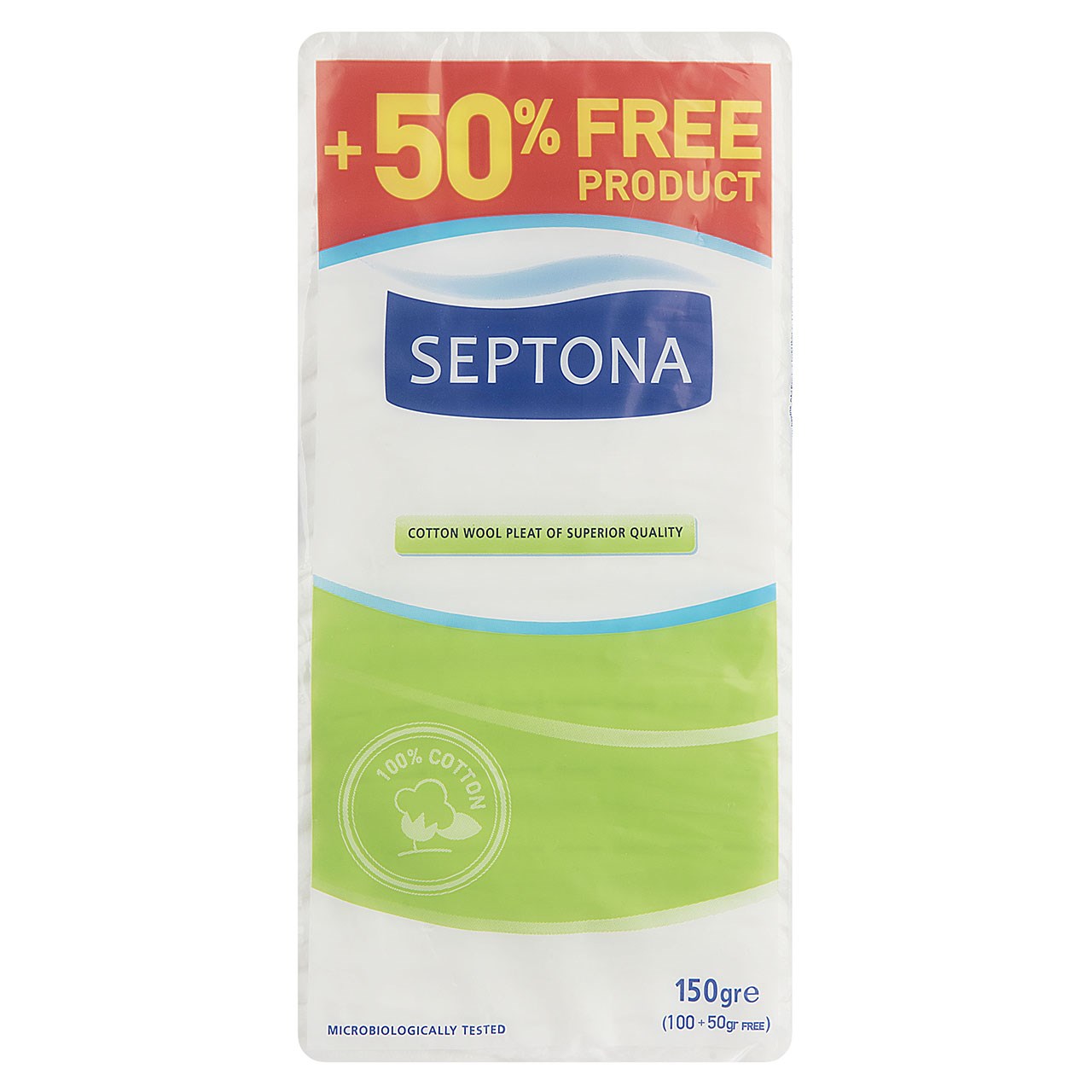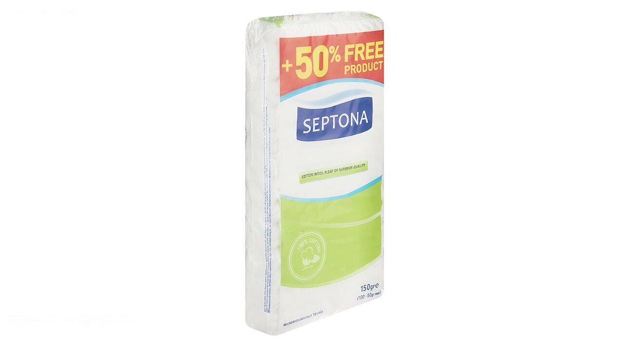 برند یونانی «سپتونا» (Septona) از تولیدکنندگان مواد بهداشتی است که با تنوع محصولات پاسخگوی نیاز افراد مختلف است. پنبه از پرکاربردترین محصولات است که از مواد طبیعی و گیاهی تولید میشود. مصارف بسیار زیاد پنبه موجب شده که از آیتمهای ضروری و موردنیاز همه به شمار رود. پنبه سپتونا در یک بستهبندی پلاستیکی و شفاف با طرحهای ساده سبز و آبی رنگ قرارگرفته که محتویات آن کاملا مشخص است. این بستهی 150 گرمی دارای 50درصد پنبهی بیشتر نسبت به بستهبندیهای سابق این محصول است. بافت بسیار نرم و لطیف پنبهی سپتونا برای استفاده روی انواع پوست مناسب است و حساسیت ایجاد نمیکند. پنبه برای پاکسازی و ضدعفونیکردن پوست به تنهایی یا به همراه مایعات و کرمهای مختلف قابل استفاده است. پنبه سپتونا برای پاککردن پوست از مواد آرایشی به همراه شیرپاککن، پاککردن لاک ناخن به همراه استون یا مایع لاکپاککن و یا حتی مصارفی غیر از پاکسازی پوست هم مورد استفاده قرار میگیرد. بستهی پلاستیکی پنبه سپتونا در قسمت بالایی دارای دو رشتهی نخی است که پس از استفاده امکان بستهشدن آن را ایجاد میکند و به این ترتیب پنبه در معرض آلودگی و اجسام خارجی قرار نمیگیرد و پاکیزگی آن بطور کامل حفظ میشود.