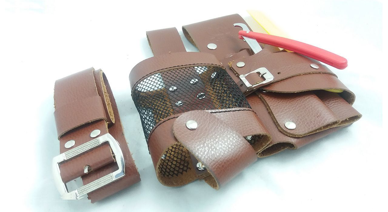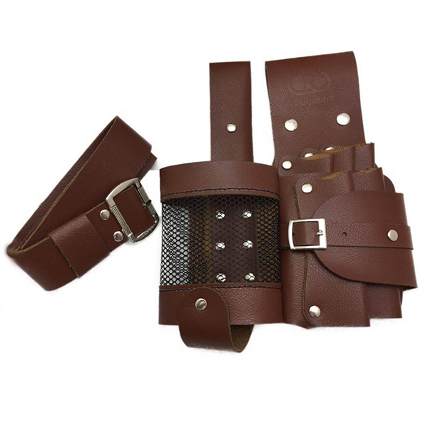 کیف کمری مخصوص آرایشگران ریمون محصولی ساخته شده از چرم بسیار با کیفیت. کاری نسبتا هنری و دست ساز که با توجه به نیاز آرایشگران گرامی ساخته و پرداخته شده است. همانطور که در تصویر محصول نیز ملاحظه می فرمایید این کیف به گونه ای طراحی شده است که همانند کمربند میتوانید آن را به راحتی دور کمر خود محکم کنید. پاکت های به کار رفته روی این کیف میتواند تعداد زیادی از ابزارآلات مورد نیاز شمارا نگهداری کنید. علاوه بر جای گذاری تعداد مناسبی شانه، برس، قیچی، ماشین اصلاح و … یک جای مخصوص اسپری آب پاش یا انواع اسپری های حالت دهنده مو نیز طراحی شده است.